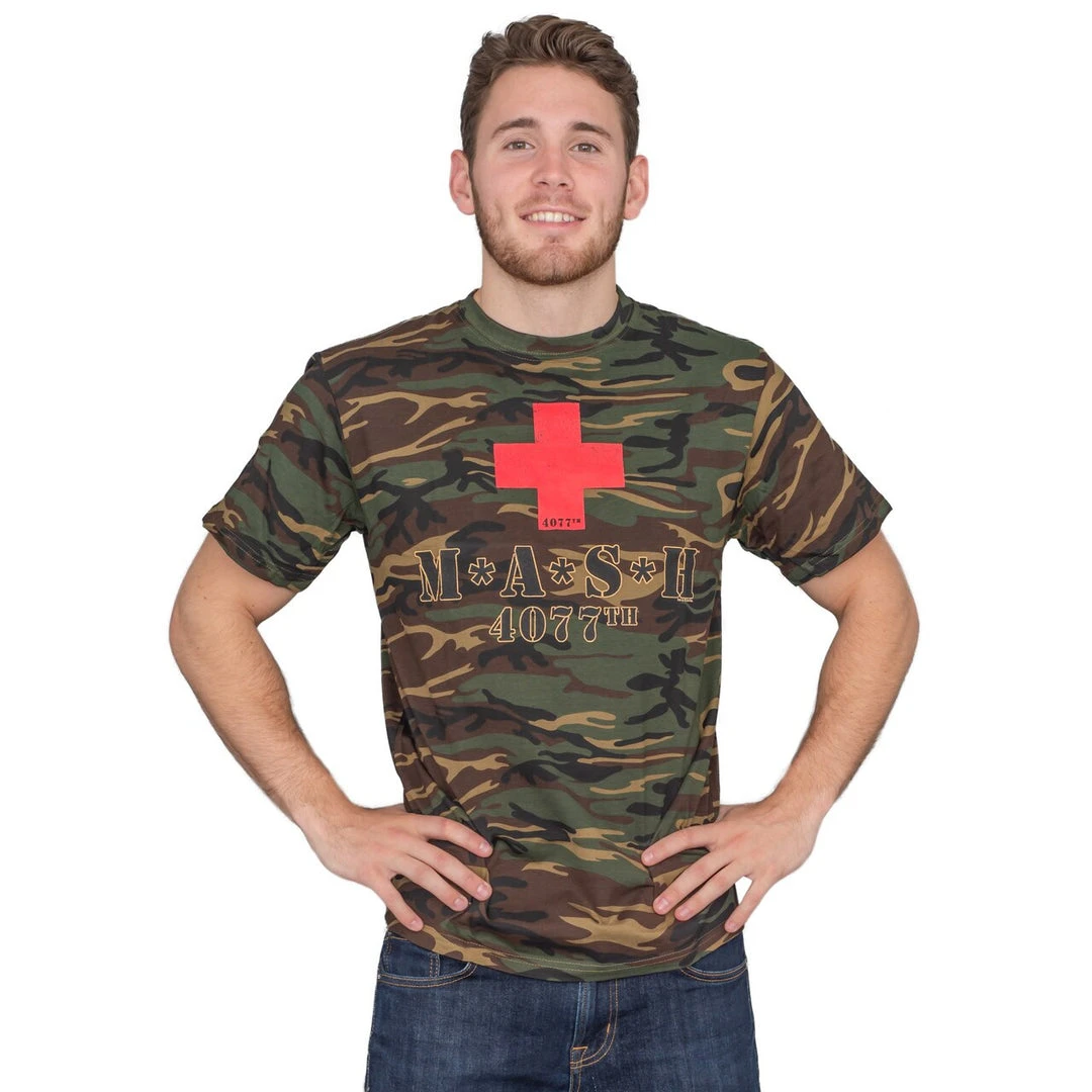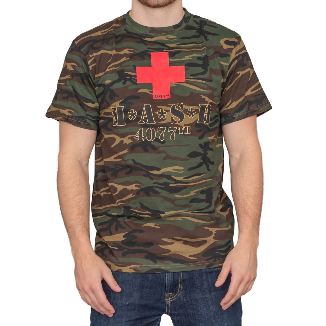 Have you ever wondered what it would be like to be a doctor during war time, taking care of wounded soldiers? If so, this officially licensed MASH t-shirt is a great way to show some support for your favorite American soldiers. Featuring the logo of the 4077th, this camouflage t-shirt directly references the movie and television show, making it an excellent choice for any die hard fan. Let the world know what your favorite series is with this M.A.S.H. t-shirt!