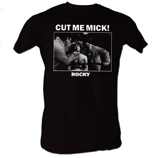 You don’t wanna do it, kid! This officially licensed “Rocky” t-shirt features Sylvester Stallone’s desperate plea to Mick when his eye begins to swell shut: “Cut Me Mick!” If you’re ready to go the distance, order yours today and pay tribute to one of cinema’s greatest scenes.