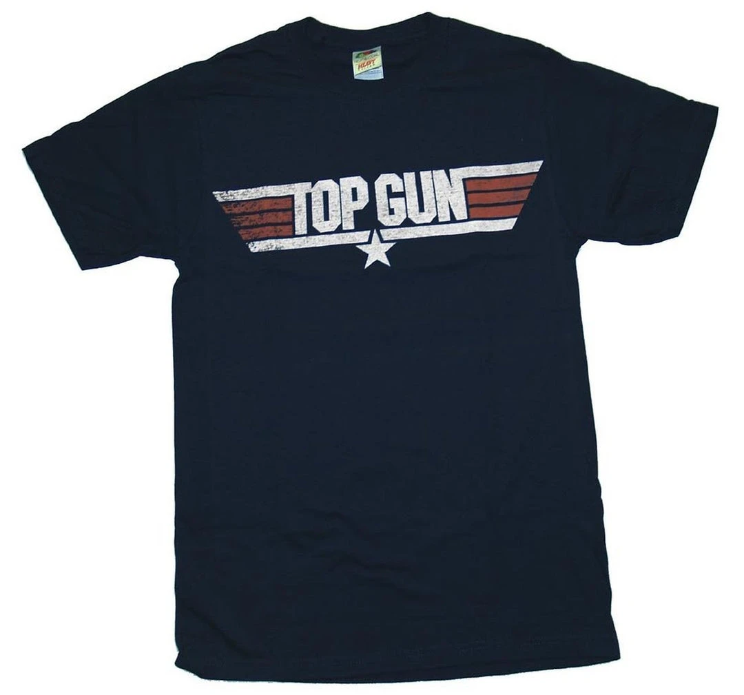 Feel the need… the need for SPEED? Then order this officially licensed “Top Gun” t-shirt today! The bold navy tee features a distressed print of the famed logo from the classic ’80s movie starring Tom Cruise.