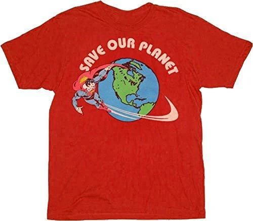 Superman can’t do it alone! Spread the Man of Steel’s message to everyone you meet wearing this officially licensed Superman t-shirt. The red fitted tee features a print of Superman patrolling from space alongside the plea, “Save Our Planet.”