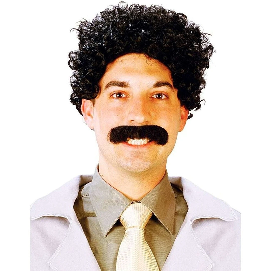 Cop the inimitable style of Kazakhstan’s most popular TV personality with this official Borat wig and mustache set! It’s the perfect way to complete your Borat Halloween costume or to gain fame as a foreign mockumentarian. Pam Anderson-approved! One size fits most adults. More Borat items: Borat Merchandise