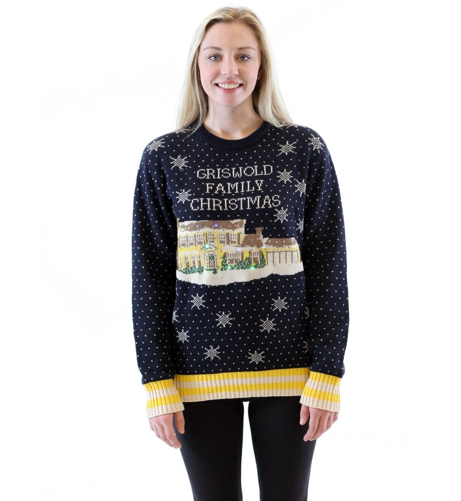 Do you remember when everyone thought that It’s A Wonderful Life was the best Christmas movie? In recent years, people have been watching Home Alone and National Lampoon’s Christmas Vacation more! Which is why we’ve created this officially-licensed National Lampoon’s Vacation Griswold Family Christmas Light Up House Adult Dark Navy Ugly Sweater. if you love Clark W. Griswold, you’ll love this fun sweater.