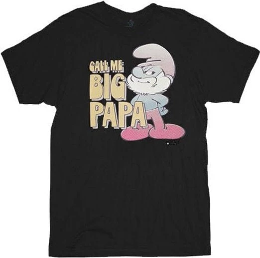 Throw a little respect into the mix for The Notorious B.I.G. When you wear this The Smurfs Papa Smurf “Call me Big Papa” tee. Featuring Papa Smurf, the elder of The Smurf tribe, in a stoic pose, this Smurfs t-shirt is officially-licensed and will promise to give your friends a good laugh when they see you wearing it around town or to your next comic con.