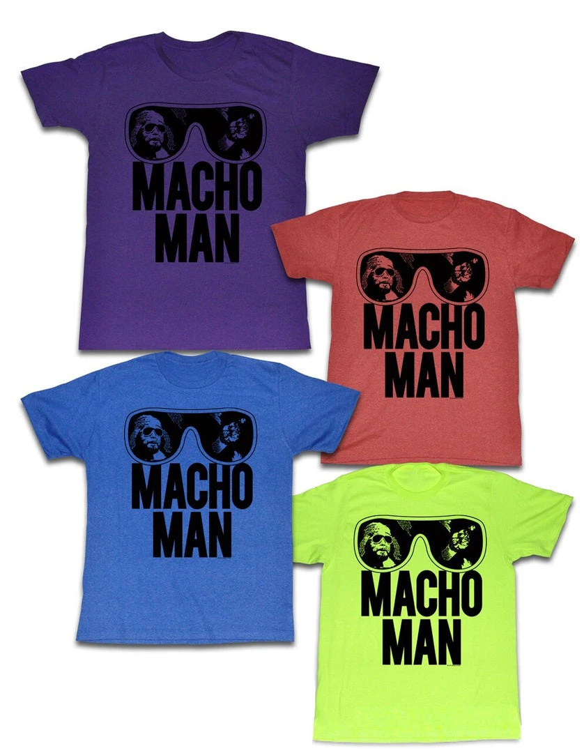 Few wrestlers are as well known and beloved as this one. Sadly, he is no longer with us, but his spirit definitely lives on! If you remember the days when Randy Savage used to light up the ring with his style and flair, why not show if off? This officially licensed Macho Man t-shirt features his face mirrored in his unforgettable glasses, making it the perfect choice for any die hard fan. Let the world know who your favorite wrestler is with this awesome WWE t-shirt! This is the perfect Macho Man Halloween costume.