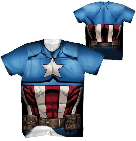 Have you ever wondered what it would be like to be America’s greatest hero? If so, this officially licensed Marvel t-shirt might just give you some idea. Designed to look just like the Captain’s patriotic suit, this Captain America t-shirt is a great way to show some love for your favorite super hero. Let the world know that you’ll defend freedom and the American way to the death with this awesome performance athletic Captain America costume t-shirt!