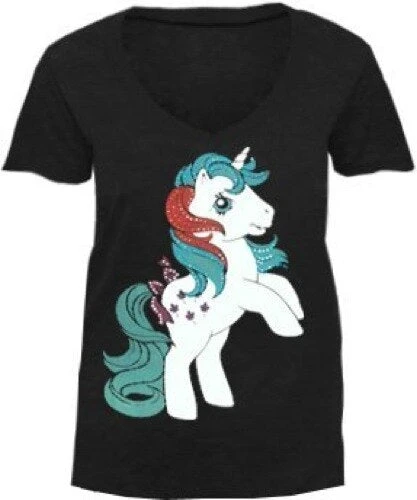 Go retro! Show everyone how much you love the classic 1980’s television cartoon series My Little Pony when you wear our My Little Pony Retro Pony Stance with Colored Studs Black V-Neck Juniors T-shirt. Available exclusively in Juniors Sizes only, our vintage ’80s pony tees are officially licensed. This colored and studded vintage pony t-shirt features one of the classic 1980’s My Little Pony characters right in the front!