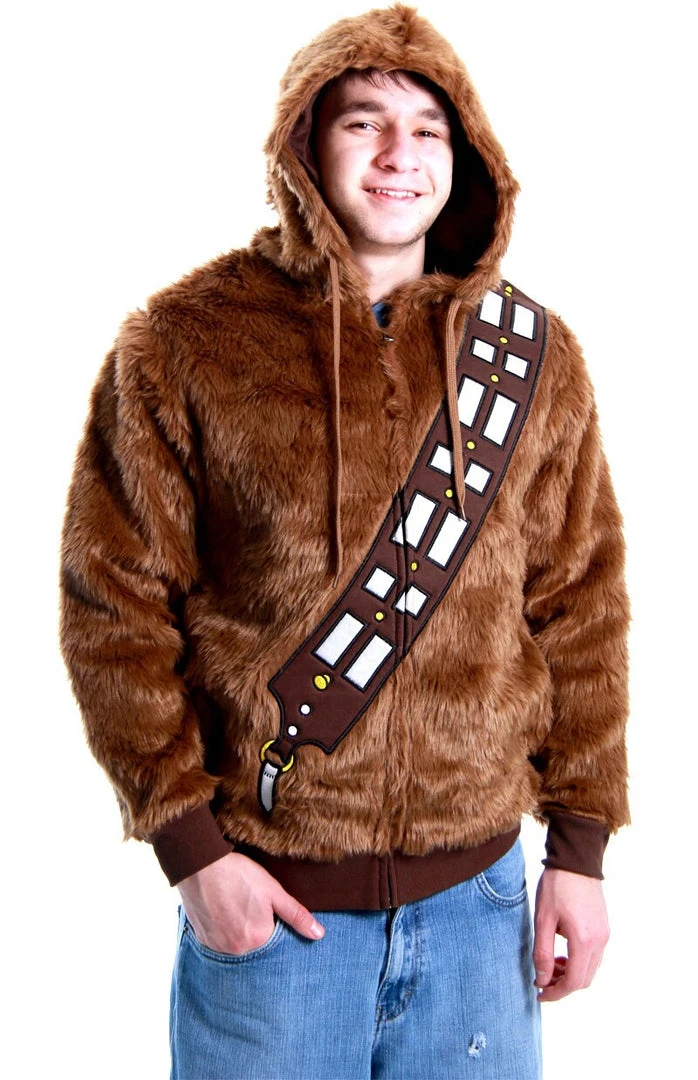 Have you ever wanted to look just like Chewbacca, but you haven’t found anything quite furry enough yet? Well, look no further than this awesome Star Wars hoodie! Made with faux fur and featuring a cloth interpretation of Chewie’s unmistakeable bandoleer, this officially licensed Chewbacca hoodie is the perfect costume for anyone looking to replicate both the look and feel of everyone’s favorite walking carpet.