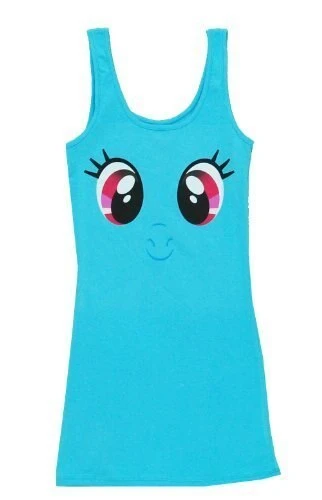 Are you fan of My Little Pony who is looking for a special outfit for a night out on the town? Or maybe, you’re looking to turn heads at your next Brony convention? Why not try out this fun My Little Pony Rainbow Dash Big Face Light Blue Juniors Tank Dress. Our officially licensed Rainbow Dash tank top dress features Rainbow’s bright eyes right on the front and her famous cutie mark on the back! Made of Cotton and Spandex and available exclusively in Junior Sizes only.