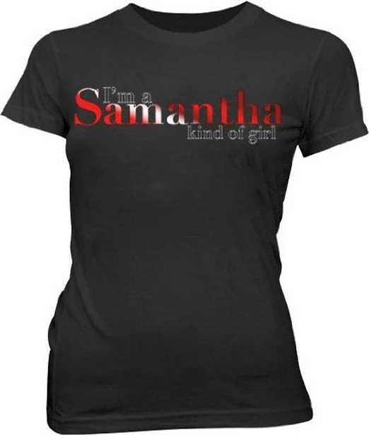 Which “Sex and the City” girl are you? If you’re a try-sexual cougar with hundreds of soul-mates, then you might be a Samantha! Share your alter-ego with the world by ordering this sexy black “I’m a Samantha Kind of Girl” juniors tee featuring the independent businesswoman’s name printed in red foil.
