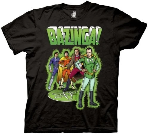 This shirt features your favorite Big Bang Theory characters in a comic book.
