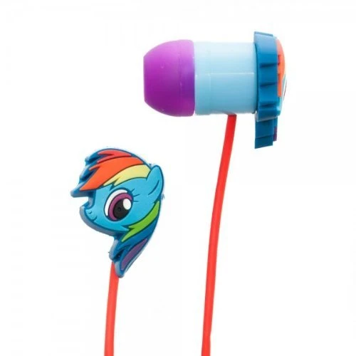 Turn it up! Now you can listen to your favorite music and not have people complain about the sound or your taste. Keep your music personal and intimate when you use our My Little Pony Rainbow Dash Rubber Ear Bud Headphones. Our Rainbow Dash earphones are officially licensed and are one-size-fits-all. Each ear bud features Rainbow Dash’s face on it and the wiring is a bright red.