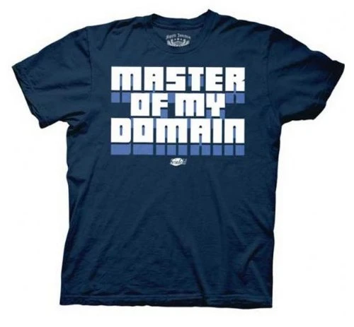 Let the world know you’re still in “The Contest” with this officially licensed “Seinfeld” t-shirt! The navy cotton tee features the famous euphemism, “Master of My Domain,” in the familiar “Seinfeld” title script.