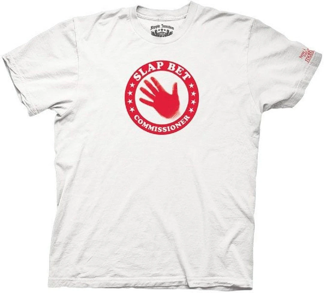 You’ll be expected to arbitrate your friends’ wagers fairly every time you wear this officially licensed “How I Met Your Mother” t-shirt! The white cotton tee recalls the hit comedy’s Season 2 episode “Slap Bet,” which featured the unforgettable revelation of Robin Sparkles’ sport-lived mall pop career. It’s legen-wait for it-dary!