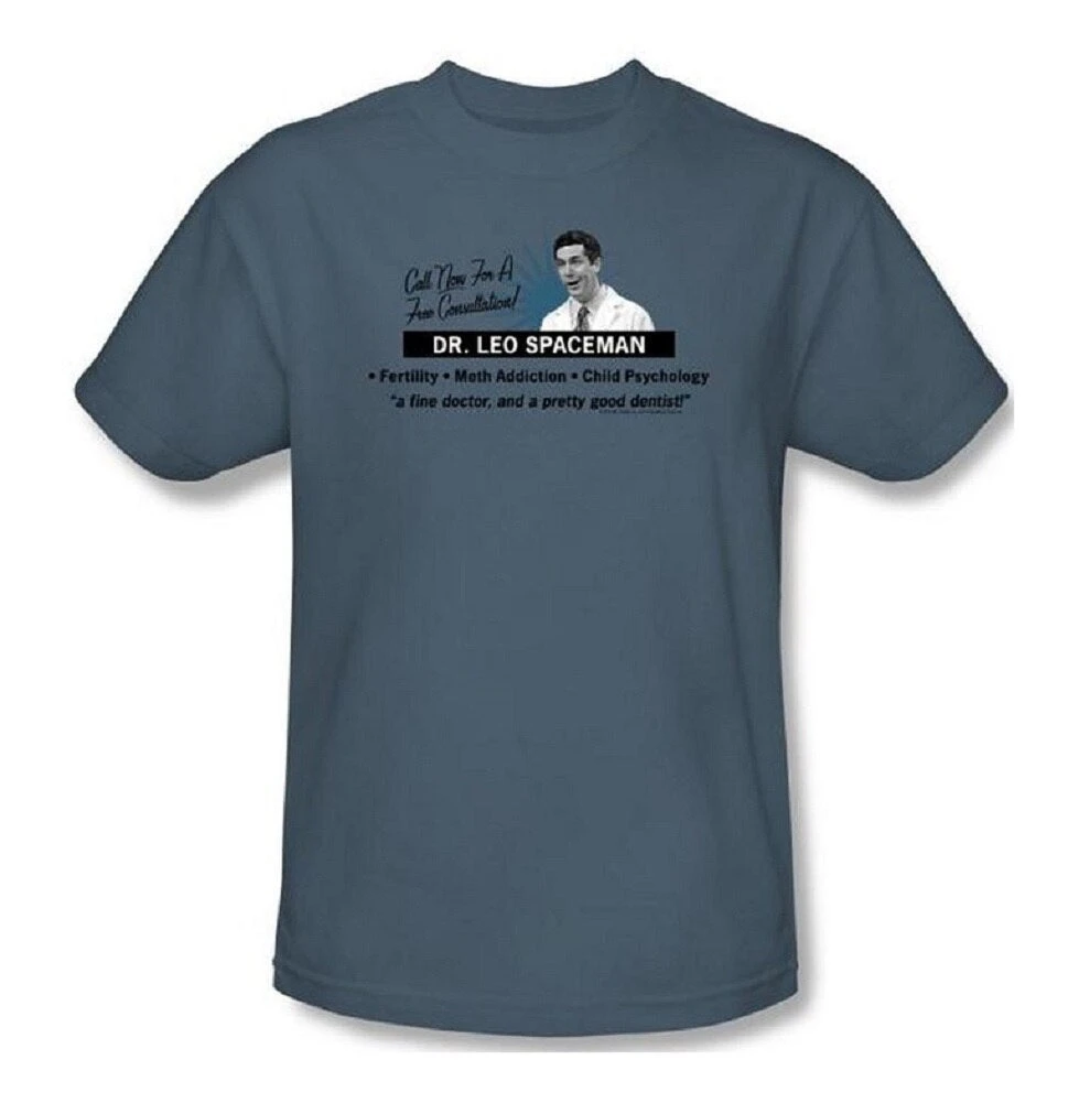 Is someone in your family considering risky, experimental plastic surgery? Nudge them in the right direction with this officially licensed “30 Rock” t-shirt advertising the services of the inimitable Dr. Leo Spaceman. Receive a free bottle of pills with every purchase! (Offer not valid anywhere.)