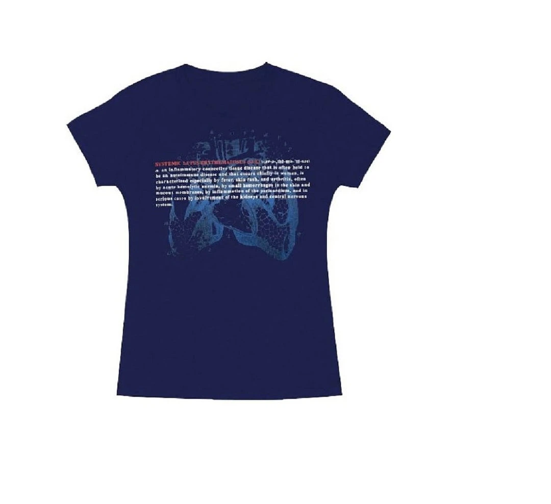 It’s never lupus! This cheeky “House” juniors t-shirt features the definition to one of the most commonly proposed diagnoses from the medical drama series. The front of the t-shirt reads, “SYSTEMIC LUPUS ERYTHEMATOSUS (SLE) N, an inflammatory connective tissue disease hat is often held to be an autoimmune disease and that occurs chiefly in women, is characterized especially by fever, skin rash, and arthritis, often by acute hemolytic anemia, by small hemorrhages in the skin and mucous membranes, by inflammation of the pericardium, and in serious cases by involvement of the kidneys and central nervous system.” The back of the t-shirt reads, “It’s not lupus.”