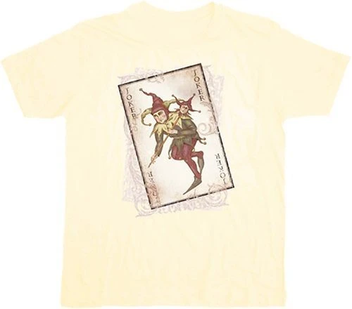 From the Dark Knight installment of Batman, this t-shirt features a vintage joker card.