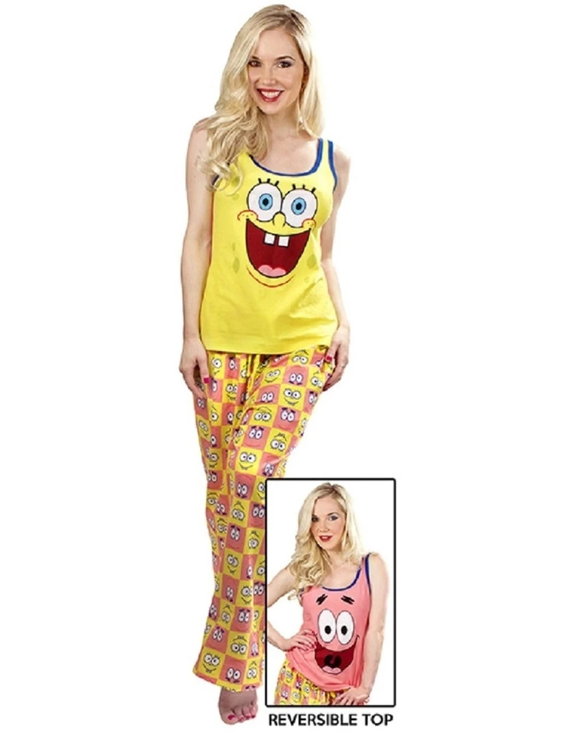 Just because it’s bed time doesn’t mean you can’t have fun! If you’re looking for something cute and comfortable to wear, this officially licensed Spongebob Squarepants pajama set is a great option. Featuring two of the most loveable and silly characters from Bikini Bottom, this Spongebob pajama set includes an adorable Spongebob tank top and Spongebob pajama bottoms, making it an excellent choice for any fan of these two underwater friends. As if the set weren’t awesome enough already, the Spongebob sleep tank is reversible and reveals Patrick on the other side! Show some love for your favorite sponge and starfish with this adorable Nickelodeon pajama set.